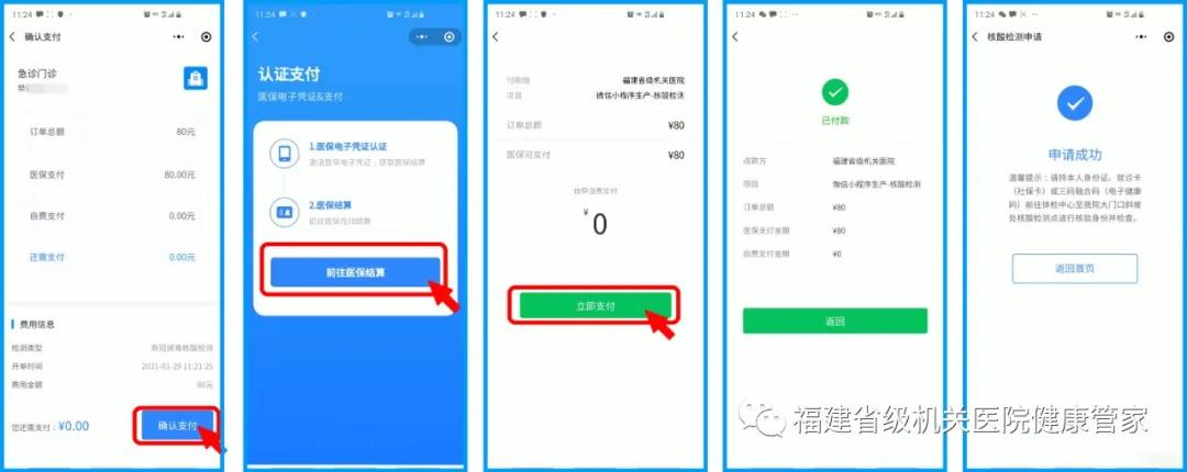 3.线上自助开单、预约、结算后,前往国产自拍av 大门口右侧与体检中心之间斜坡处核酸采集点出示八闽健康码,做好通信大数据码核验,配合做好体温检测后,利用健康码(三码融合码)或就诊卡即可在核酸采集点完成全部流程。疫情期间,实名制就诊,请务必携带有效身份证件,提前申领八闽健康码。