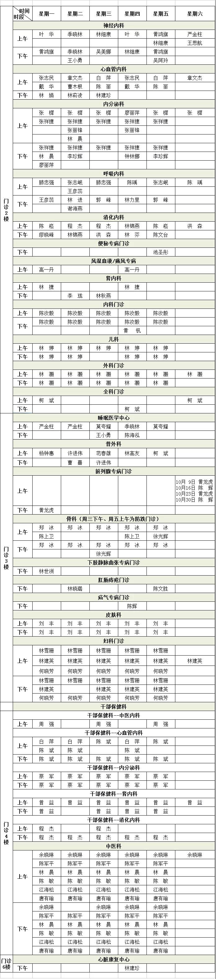 (注:专家门诊如有临时变动,以院方当日公布为准!)