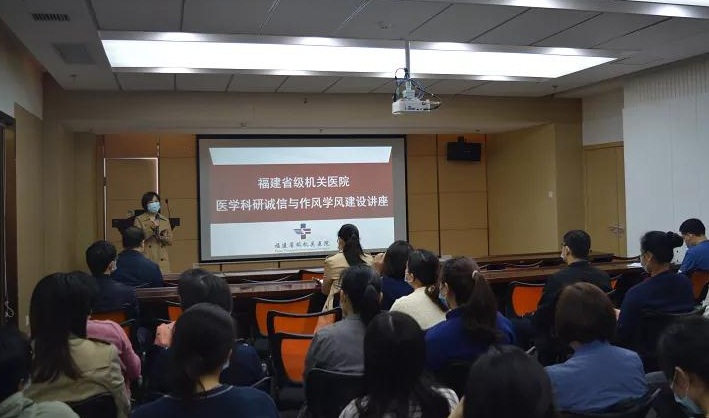 为进一步加强科研诚信和作风学风建设,预防学术不端的行为发生,11月4日下午,国产自拍av邀请福建省立国产自拍av 科研处陈懋副处长作“加强科研诚信建设,弘扬科学家精神”专题讲座。讲座由医教部高一丹副主任主持,在研科研项目负责人和各科室业务骨干等参加了此次讲座。