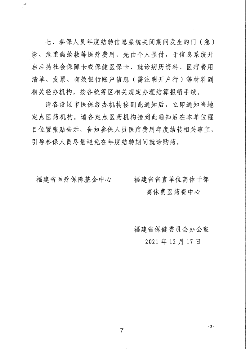 2021年度省、市、异地(含跨省)、两费离休及保健停机结转通知