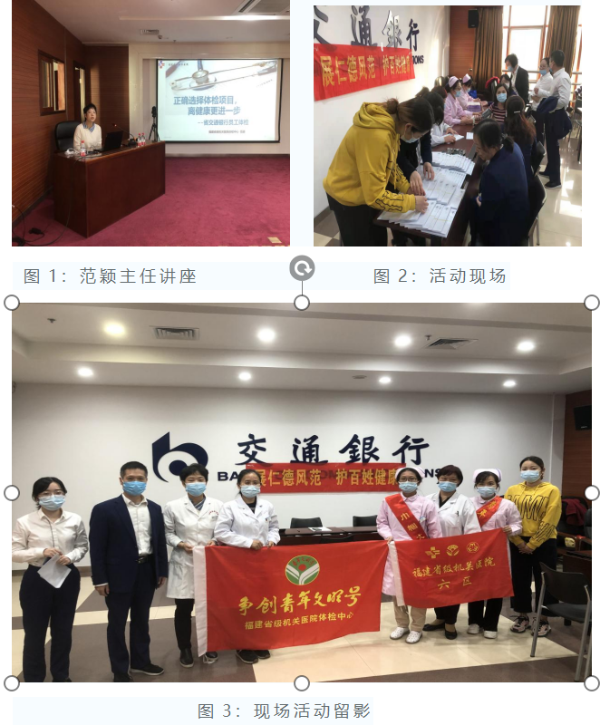 活动现场糖专组组长范颖为大家讲授了《正确选择体检项目,离健康更进一步》的讲座,广大员工们听后豁然开朗,对于每年健康体检项目的选择有了更清晰的认识,更懂得选择适合自己的的项目,更具有个体化和针对性。中医科余晓琳主任就生活中员工们常见的问题进行答疑解惑,告诉大家如何采用中医的方法更好的养生。义诊团队耐心细致、不厌其烦地解答每位员工提出的问题,为银行职工免费健康咨询,血糖、血压检测,为糖尿病患者免费开展生活方式指导、饮食指导、胰岛素注射指导等服务。本次健康咨询活动吸引了近100余名员工的积极参与,现场热闹非凡,参与免费测量血糖和咨询的职工络绎不绝。