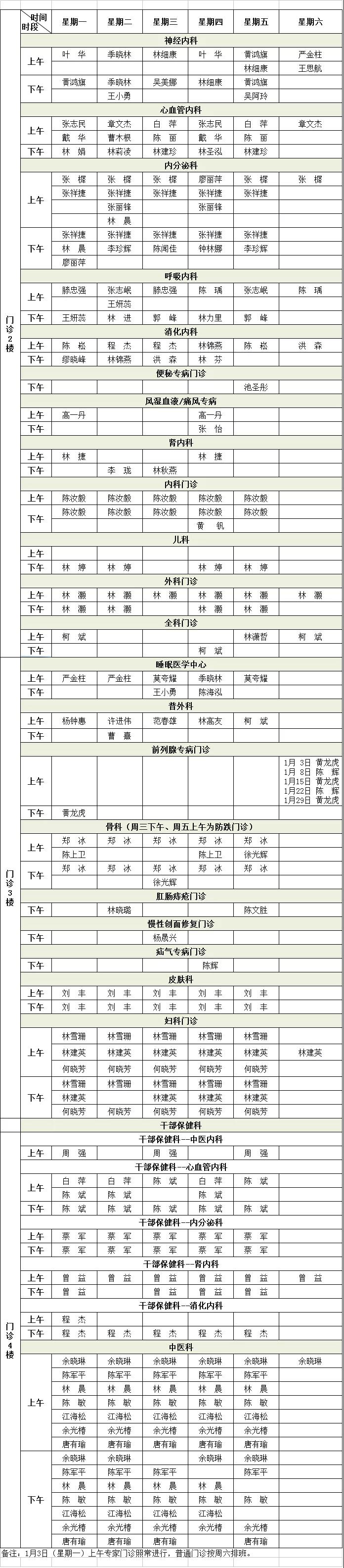 (注:专家门诊如有临时变动,以院方当日公布为准!)