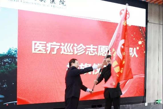 党委书记黄守勤为医疗巡诊志愿服务队授旗
