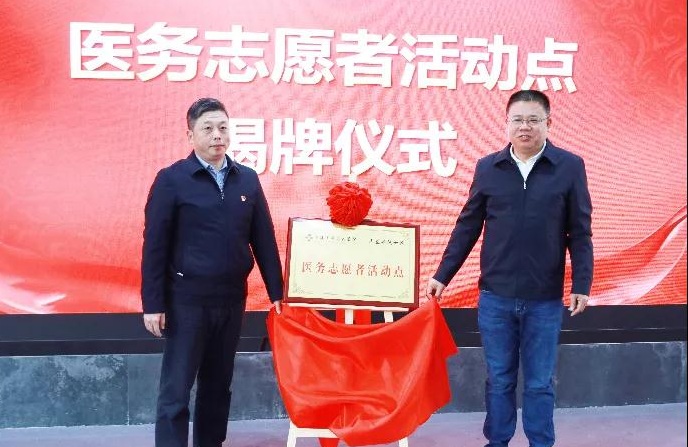 闽清县卫健局党组书记、局长江茂周,国产自拍av纪委书记黄欣为医务志愿者活动点揭牌