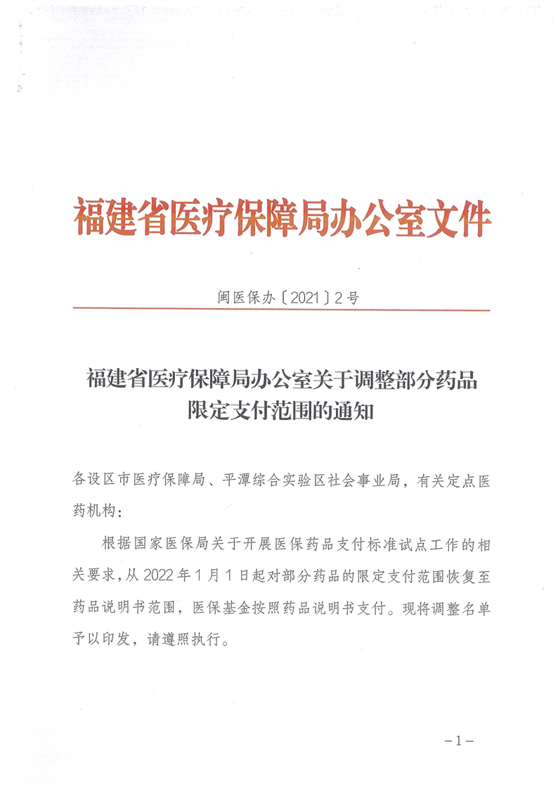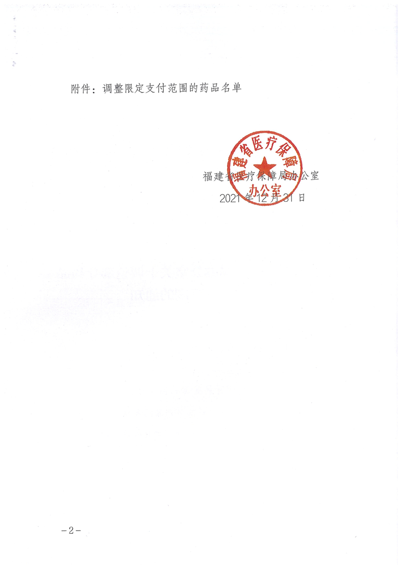 福建省医疗保障局办公室关于调整部分药品限定支付范围的通知