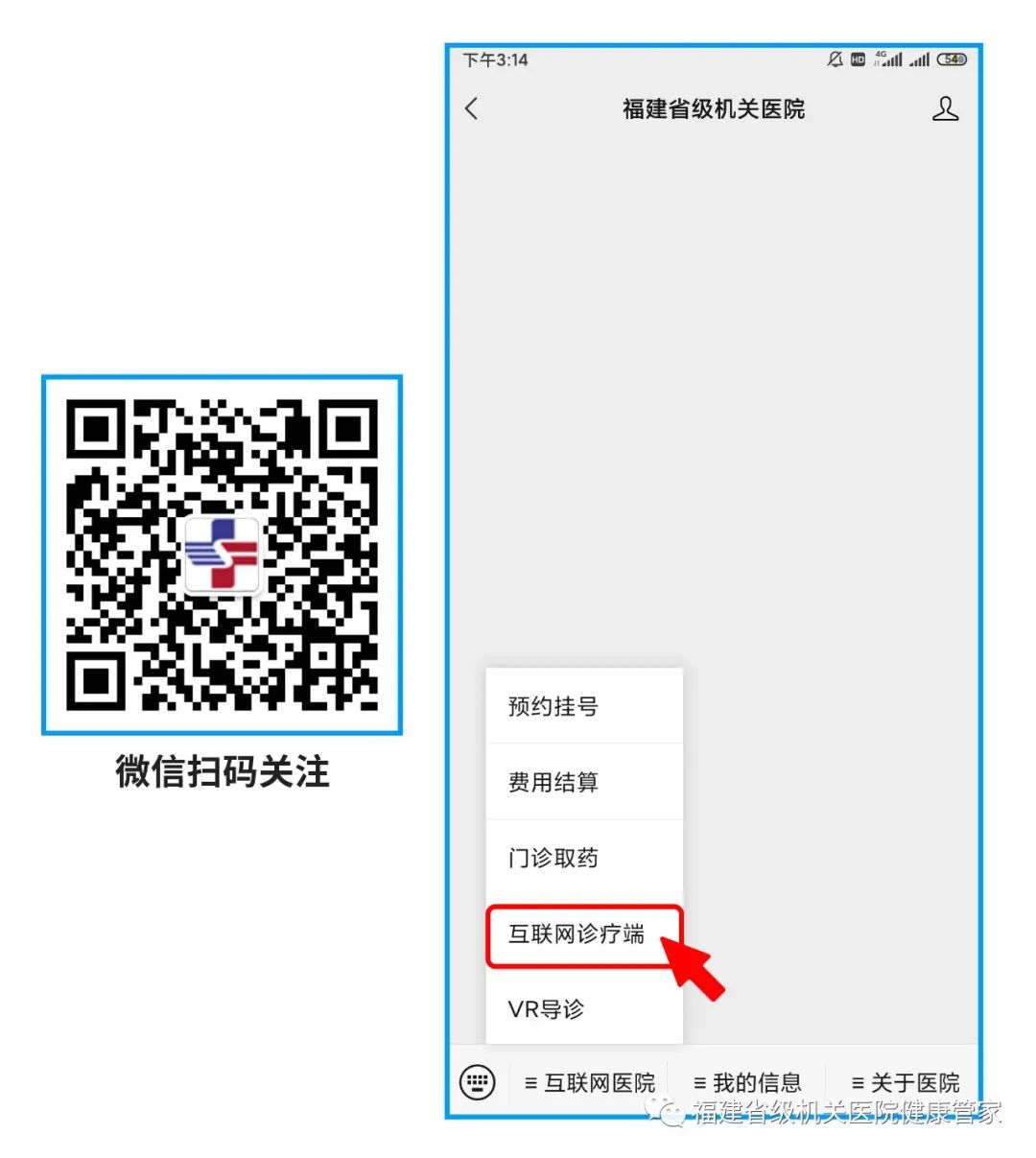 方式二:微信扫描下方二维码,关注“国产自拍av ”微信公众号,之后点击“互联网国产自拍av —互联网诊疗端”,进入互联网国产自拍av 。