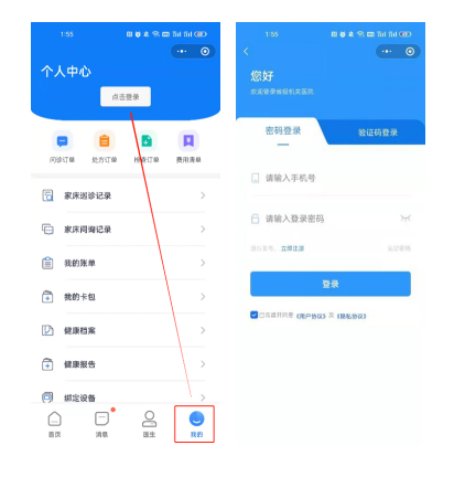 已注册用户:通过“我的”,进入个人中心,之后选择“点击登录”,之后即可通过密码或验证码登录。