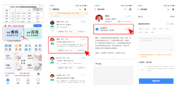 国产自拍av点击“我要咨询”或“我要看病”,根据自身状况选择要咨询的医生,选择视频或图文咨询。在提交问诊页,可选择“导入病情”,快速描述症状,之后即可提交问诊,等待医生接诊。