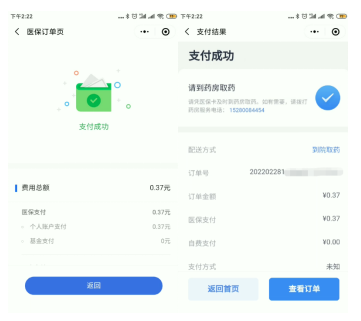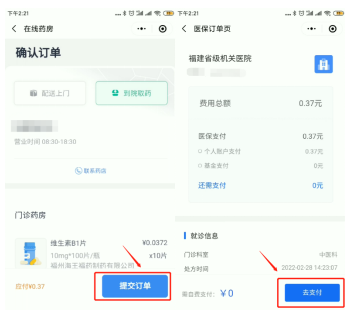 开通医保授权后,点击“提交订单”,然后选择“去支付”并完成支付。后续,可按照之前选择的取药方式到院取药或在家等待配送上门。