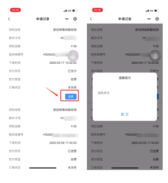 如若时间有变,也可在核酸检测申请页点击“申请记录(退费)”进行退费。