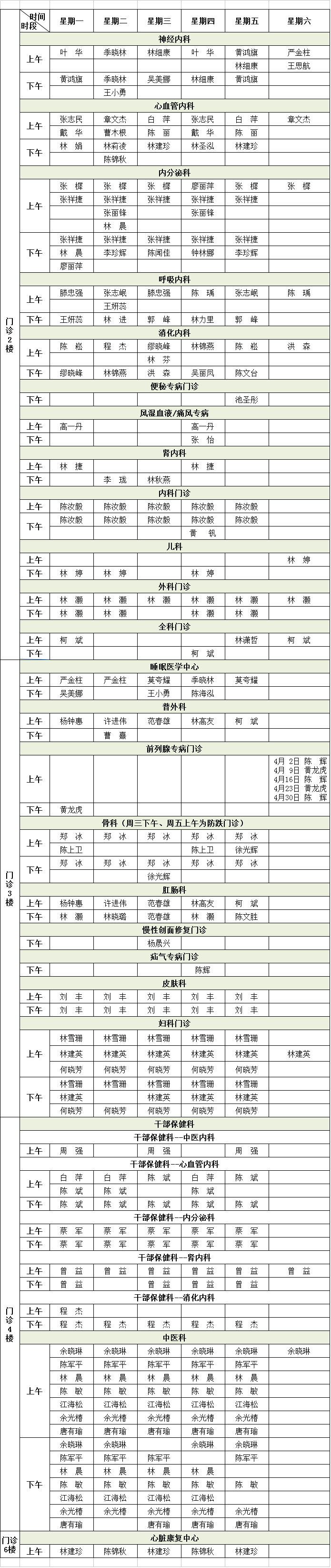注:专家门诊如有临时变动,以院方当日公布为准!)