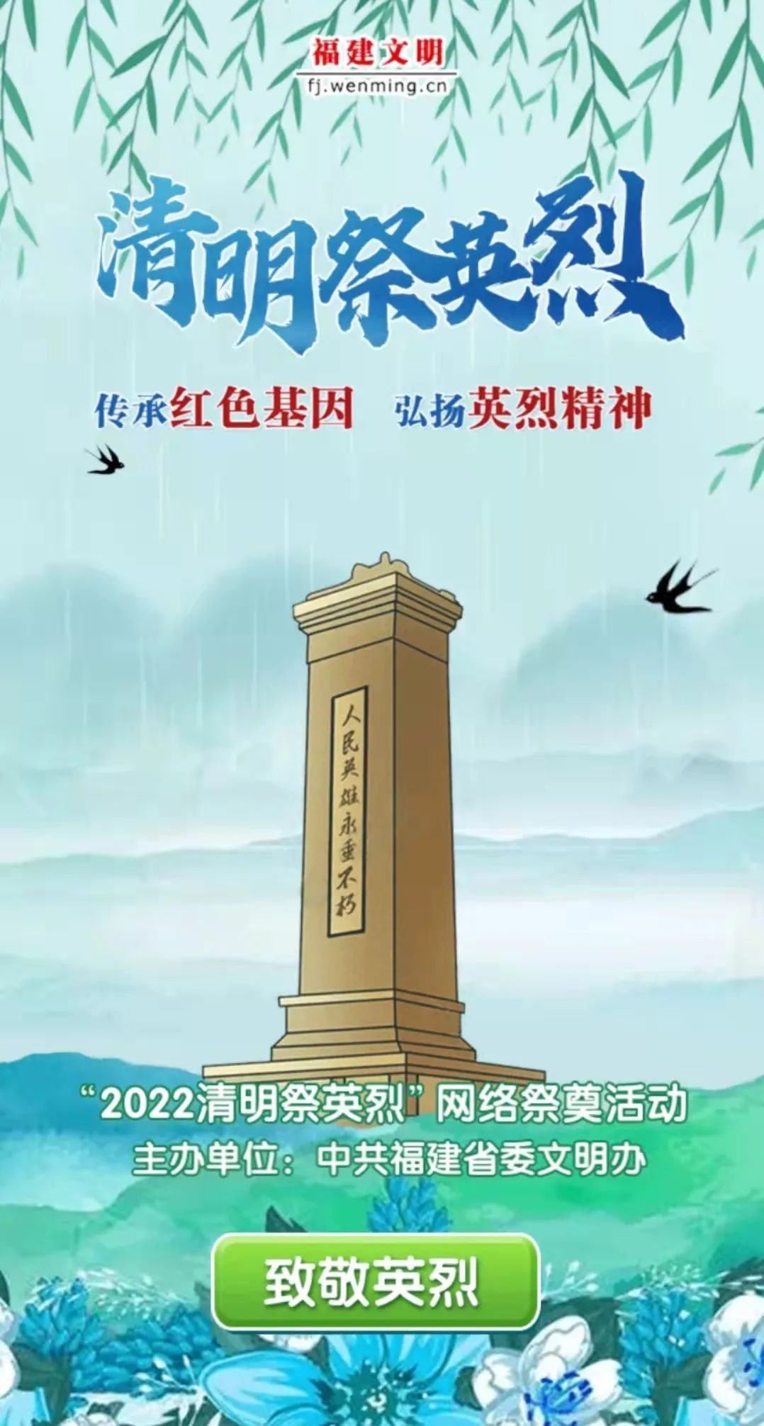 清明节即将来临,为倡导文明祭祀,培育文明新风,引导未成年人“扣好人生第一粒扣子”,缅怀先烈,传承红色基因,弘扬英烈精神,根据省文明委年度工作安排,今年清明节前后,我省将继续组织开展“2022清明祭英烈”网络祭奠活动。