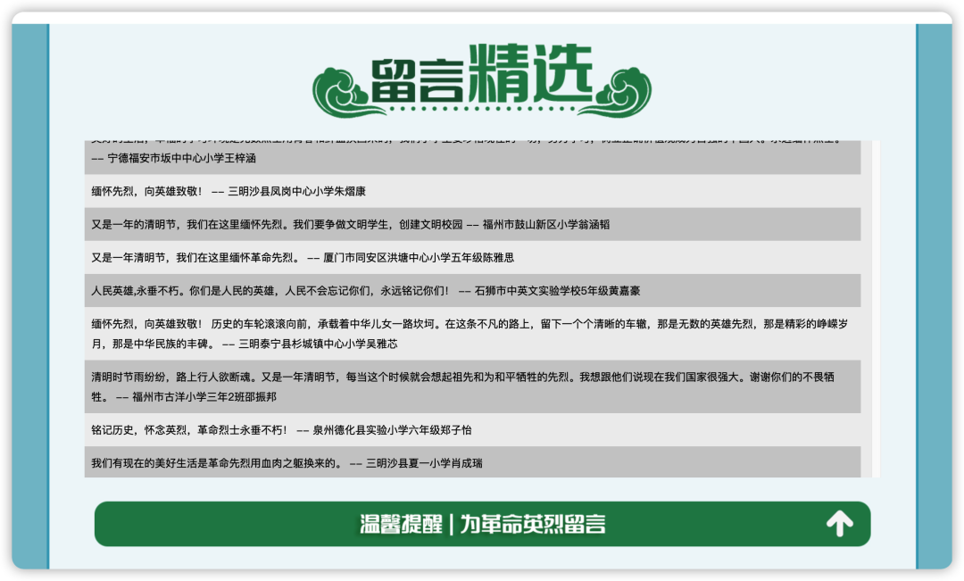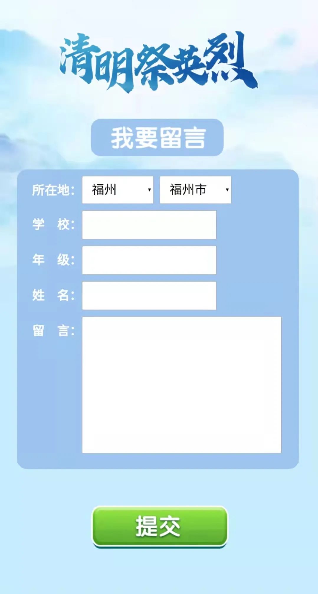 2)点击微信公众号菜单栏专栏“祭英烈”参与;