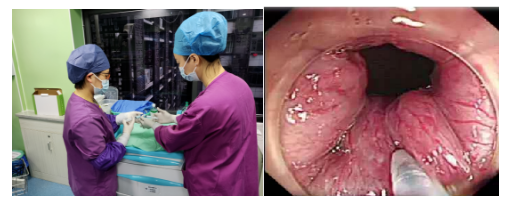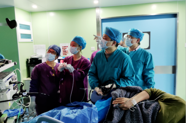 在省立国产自拍av 钟世顺主任医师指导下,洪森副主任医师、梁锦云、黄秀容护士及麻醉团队相互配合,为该患者施行无痛内镜下内痔硬化治疗。整个治疗过程顺利,用时不到20分钟,治疗期间及术后患者无诉特殊不适。随访患者情况良好,症状改善未再有便血。