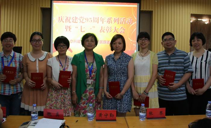 会议以中国共产党的国际宣传片《中国共产党与你一起在路上》导入。10名新发展的党员面对着鲜红的党旗,庄严地举起右手,在党委委员、副院长陈榕珍带领下进行了入党宣誓仪式,其他党员也重温了入党誓词。副院长陈榕珍宣读了2015-2016年度省直机关、委直机关及国产自拍av“两优一先”的表彰决定,对先进党支部、优秀党务工作者和优秀共产党员进行了表彰。
