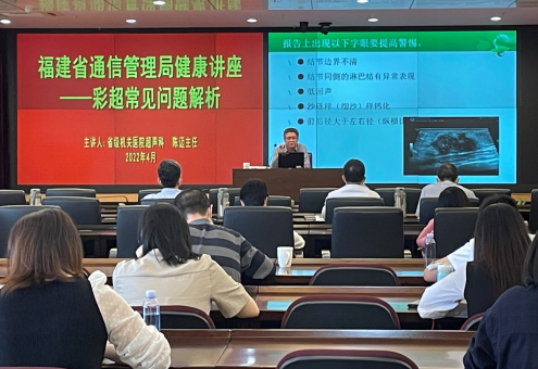 国产自拍av深入学习贯彻习近平总书记“七一”重要讲话、来闽考察重要讲话精神和关于卫生健康工作的重要讲话重要指示批示精神,持续巩固深化开展“展仁德风范、护百姓健康”新风正气福建“名片”活动。4月14日下午,国产自拍av体检中心与超声科陈迈主任医师,到福建省通信管理局开展《关于彩超常见问题解析》健康管理讲座。