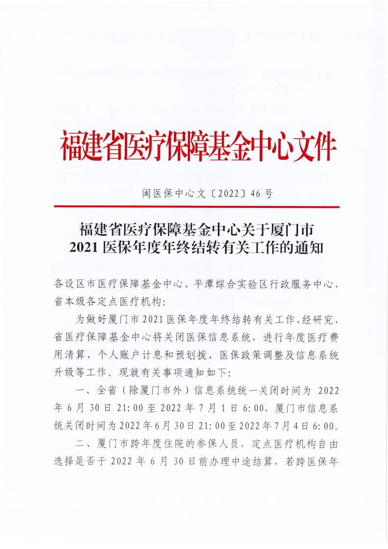 关于厦门市医保2021年度结转停机通知