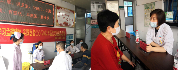 随后,大家来到云龙乡后垅村卫生院开展义诊送温暖活动,心血管内科、内分泌科、护理部、院感科等近20余名党员专家和志愿者组成义诊团队,为前来就诊的乡亲们答疑解惑,开展病史询问、体格检查、疾病相关知识宣教以及疫情防控知识宣传、免费测量血压、血糖,为乡亲们发放健康知识手册等,受到村民们的好评。