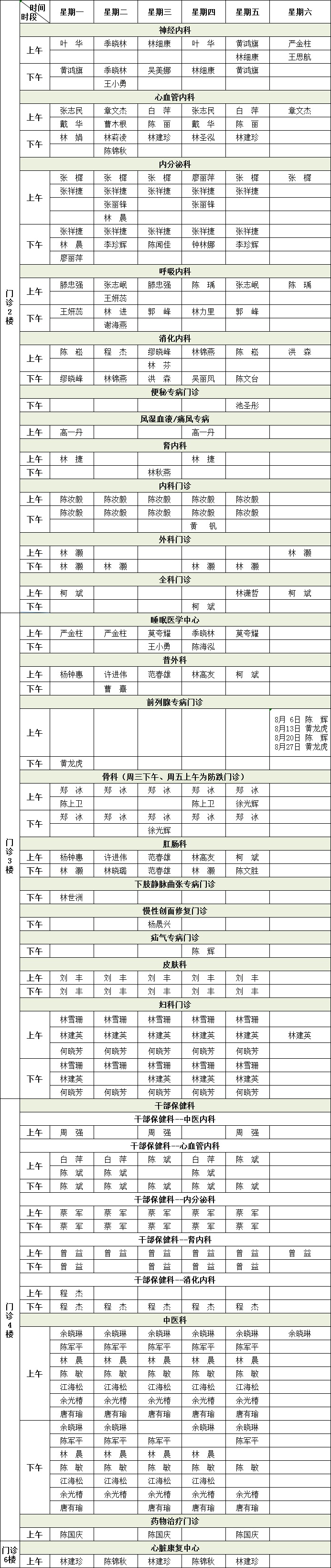 国产自拍av 2022年8月专家门诊排班表来啦!有需要的小伙伴赶紧收藏。