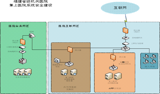 然而掌上国产自拍av 系统在帮助患者便捷就医的同时,也给国产自拍av 内网系统带来了前所未有的风险与挑战,内外网数据交互的安全性尤为重要。在此过程中,国产自拍av 必须严格防范病毒的感染或者黑客的入侵,否则轻者数据被盗取或损坏,重者系统瘫痪。国产自拍av结合了网络安全性现状,构建了掌上系统网络拓扑如图所示,不仅在外网设置了防火墙、防病毒网关等硬件设备进行了有效防范,而且在内外网对接处设置网闸、防火墙、入侵防御系统、防病毒网关进行多层防护,从而保证终端用户和内网系统的数据安全。
