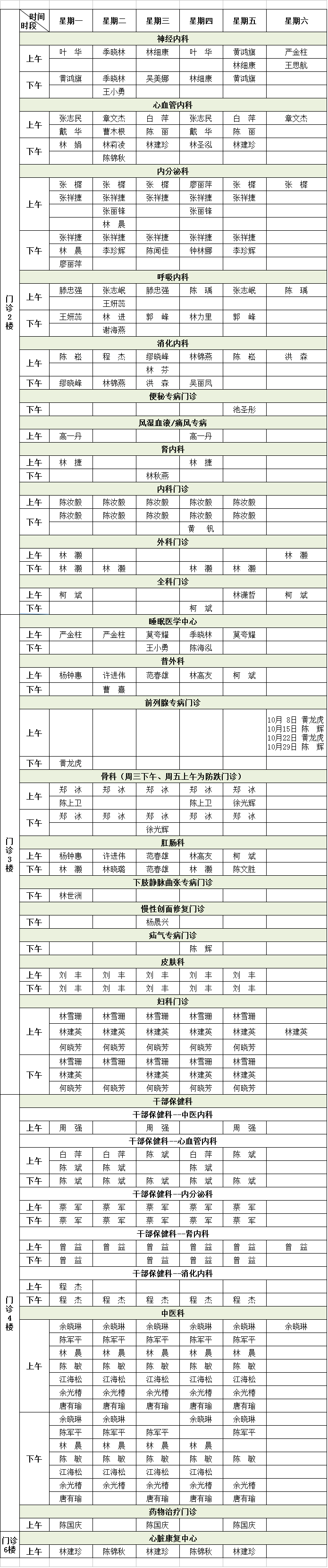 (注:专家门诊如有临时变动,以院方当日公布为准!)