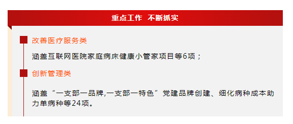 聚焦“三提三效” ,落实以增强政治功能和组织力为重点,在“新”“活”“实”上下功夫,扬优势、补短板、创品牌,深入开展“一支部一品牌、一支部一特色”党建品牌创建,推进重点工作30项。