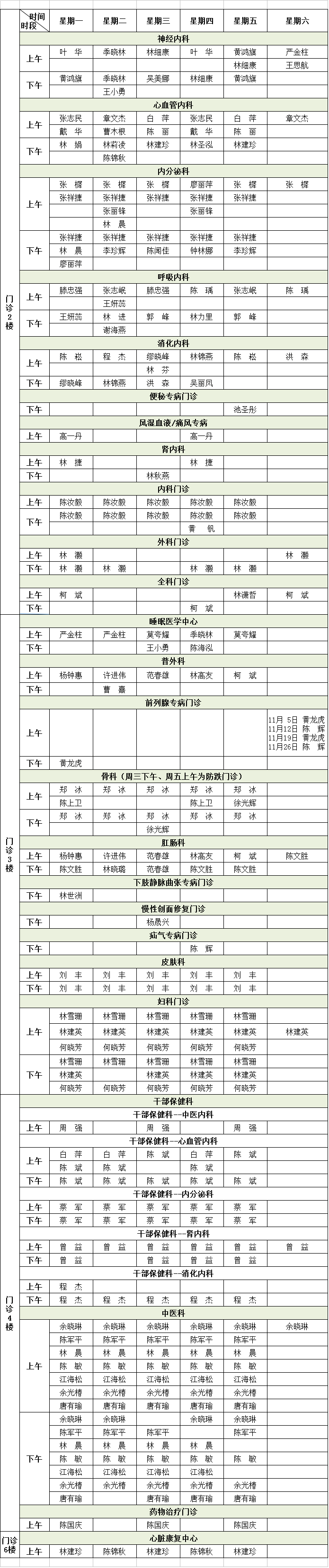 国产自拍av 2022年11月专家门诊排班表来啦!有需要的小伙伴赶紧收藏。