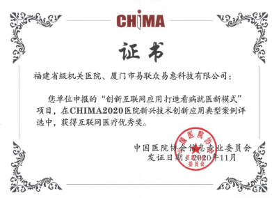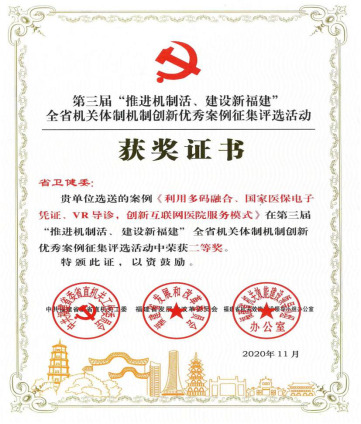 2020年全国首家基于医保电子凭证实现医保在线结算、福建首家完成VR对接诊疗服务,荣获全省机关体制机制创新二等奖。