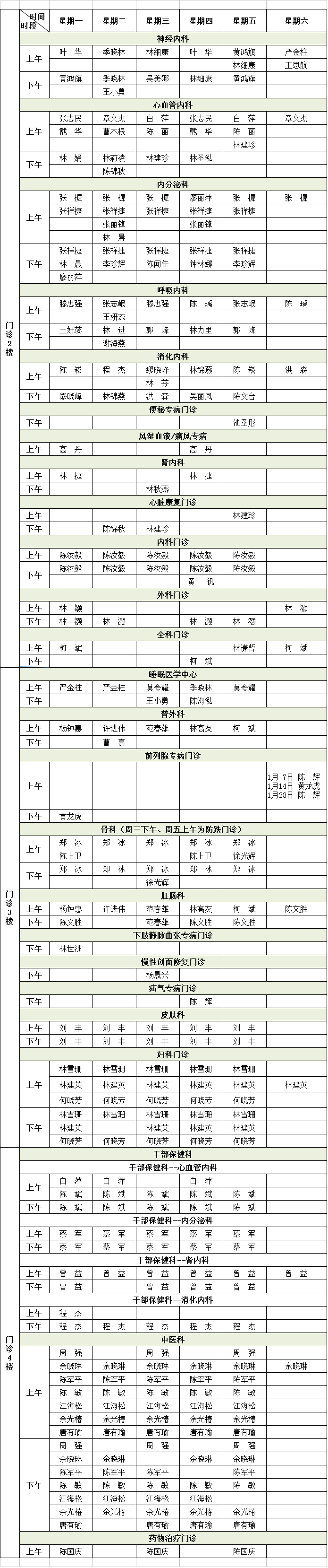(注:专家门诊如有临时变动,以院方当日公布为准!)