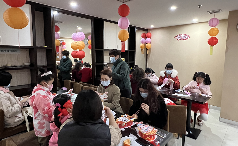 手工制作花灯包含国画彩绘和亲手制作萌兔花灯。国画彩绘既有优雅古韵又有新奇创作,各式萌兔悄然成型,提灯共赏共游,老少皆宜,好不热闹。
