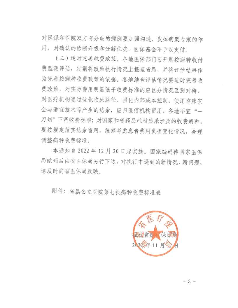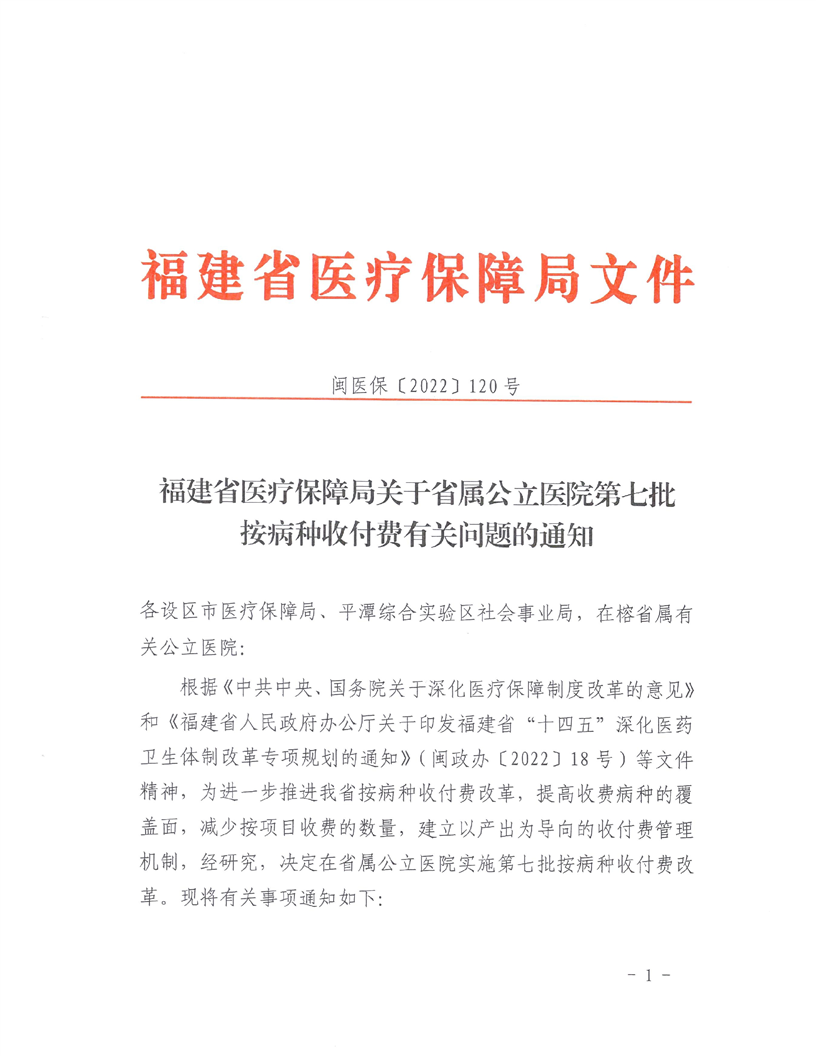 关于省属公立国产自拍av 第七批按病种收付费有关问题的通知 闽医保〔2022〕120号