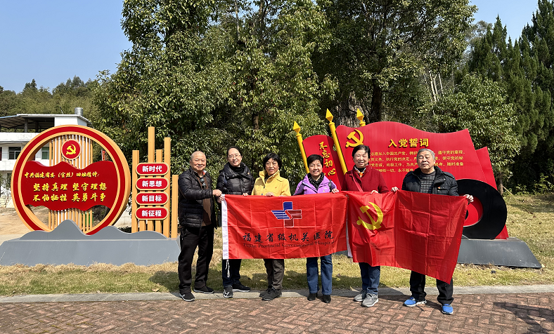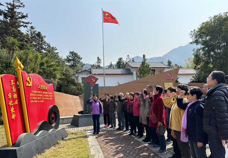 在福建省委旧址展览馆,第一党支部书记康宽红带领老党员在入党誓词碑前再次举起右手重温入党誓词,之后参观了该展馆内容。
