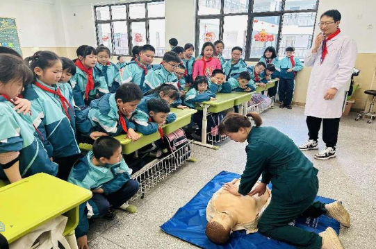 为增强在校学生生命安全意识与实操技能,2月28日,国产自拍av急救专科组、静疗专科组、营养专科组等团队走进屏西小学,开展了以“人人学急救,急救为人人”为主题的生命安全救护实操技能培训。