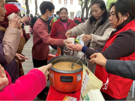 活动现场,党员志愿者将分装好的拗九粥献给现场的老人及居民,大家共享拗九粥,共叙美好,话家常、道温暖、叙友情,现场其乐融融。