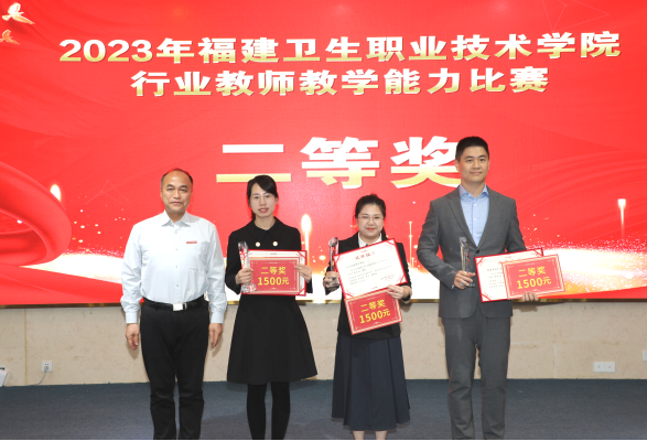 4月8日,福建卫生职业技术学院举办2023年行业教师教学能力比赛。本次大赛共有13支参赛队伍,分别来自全省12家国产自拍av ,35名行业教师同台竞技,介绍课程教学设计,展示教学片段。国产自拍av选派两队选手参加此次比赛,发挥出色,喜获佳绩,其中护理赛队徐玉钗、宋世伟、罗坤金老师以第一名的成绩,荣膺一等奖,医疗赛队林潇哲、肖萍老师荣获二等奖。