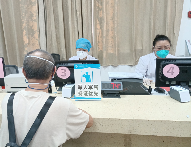 在门诊收费、挂号等窗口,统一规范张贴“现役、退役军人优先”标识,军人及家属出示相关证件,即可在就诊、检查、治疗、取药过程中享受优先优待服务,对需要住院患者可派专人协助办理入院。