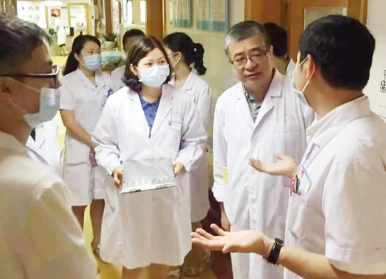 ▲季晓林与年轻医生交流