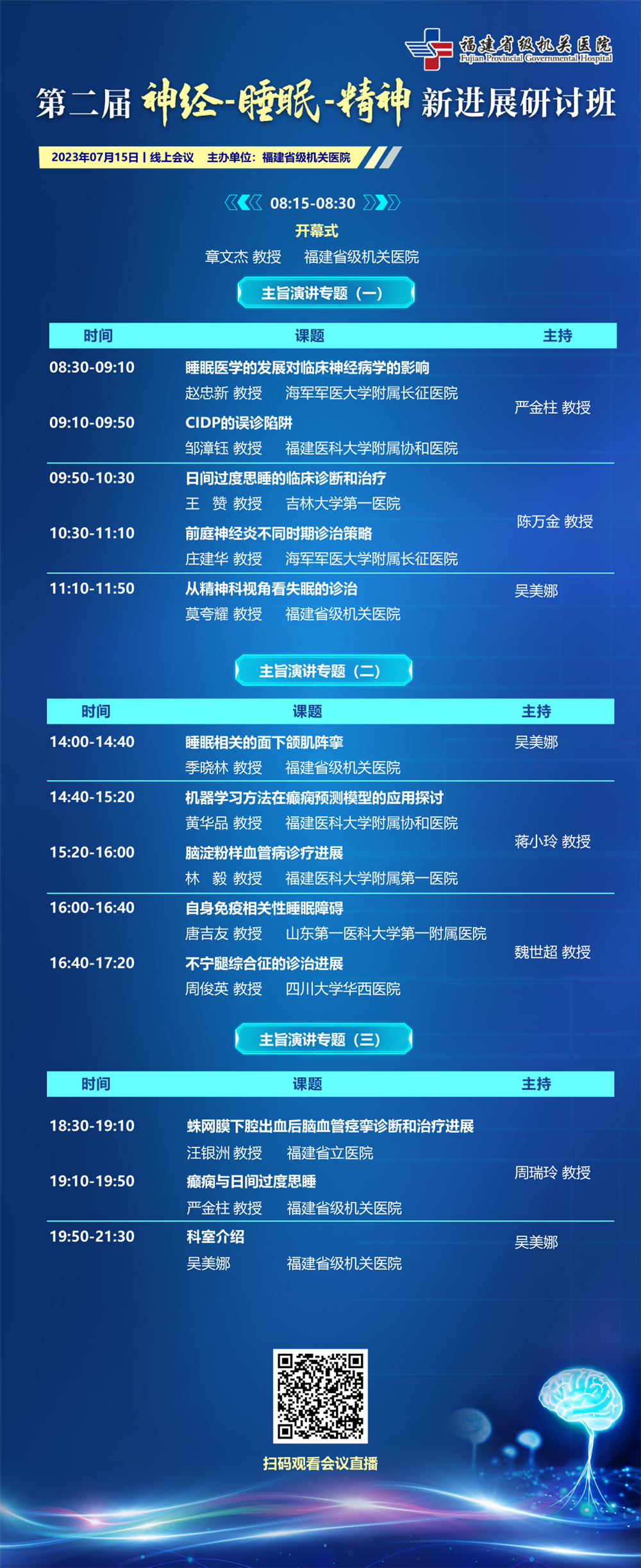 本次研讨班邀请省内著名神经病学专家陈万金教授、蒋小玲教授,睡眠医学专家魏世超教授及神经电生理专家周瑞玲教授担任主持嘉宾。