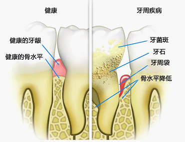 老百姓普遍知道蛀牙的危害,却不知道牙周病才是牙齿的最大“杀手”。牙周,就是牙齿周围的牙龈、牙槽骨。如果把牙齿比作一棵树,那么牙周就是这棵树的水土,水土流失了,树就要倒了,不管这棵树有多么高大、多么强壮,都没有用了。在我国,牙周病的患病率很高,一半以上的拔牙都源于牙周病。牙周病不是“小病”,甚至会影响全身健康,导致或加剧其它疾病,如冠心病、糖尿病、肺部感染等。因此,对于牙周病不可掉以轻心。