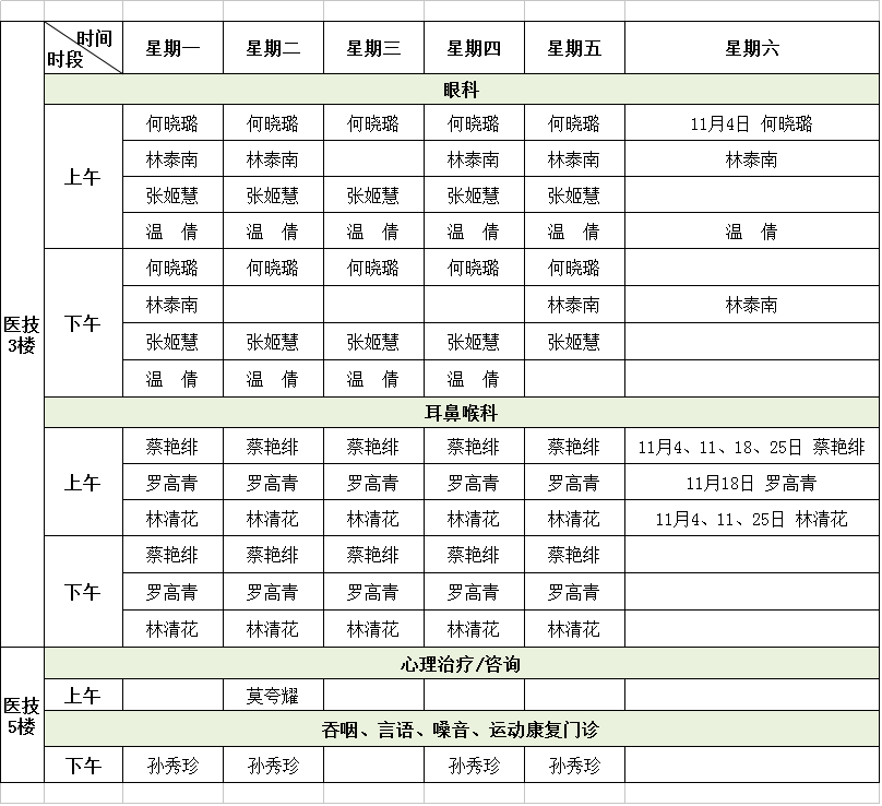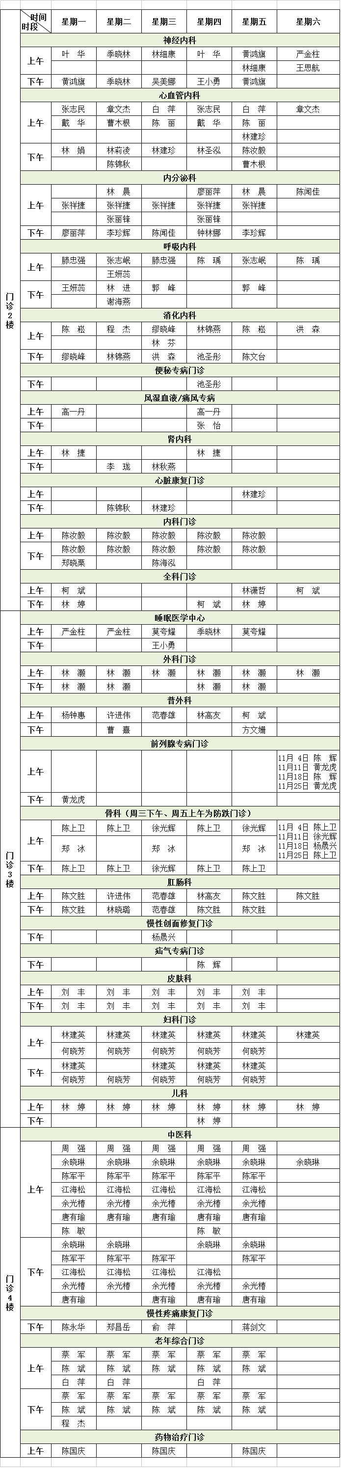 国产自拍av 2023年11月专家门诊排班表来啦!有需要的小伙伴赶紧收藏。
