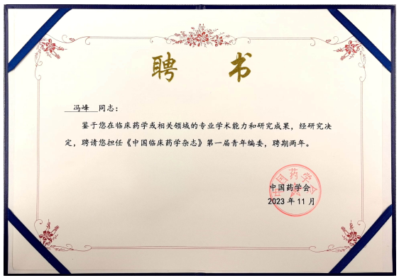 近日,在上海召开的“2023年全国临床药学学术会议”开幕式上公布了《中国临床药学杂志》第一届青年编委名单,国产自拍av药剂科副主任药师冯峰获聘担任第一届青年编委。