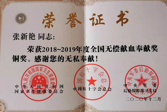 “热血送暖 为生命接力”无偿献血活动已成为国产自拍av创建文明单位的一项常态化活动,国产自拍av高度重视无偿献血活动,院领导带头参加献血,全院职工积极响应号召,踊跃参与。近年来,年平均献血量均达20000毫升以上。其中,麻醉手术室陈秉娥护师、康复科郑昌岳副主任医师、供应室张新艳护士长等,从医以来,一直坚持献血,分别荣获全国无偿献血奉献奖金奖、银奖、铜奖,他们默默用“热血”传递着生命的希望。