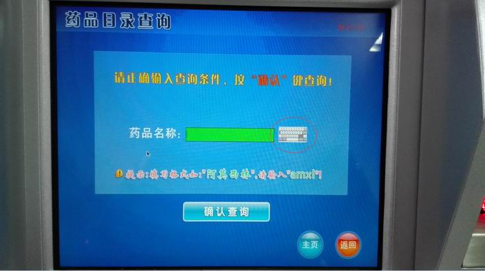 患者可在院内任何一台自助机上,点击查询功能框,输入所查项目名称(或药品名称)的汉语拼音首字母,即可精确适时查询价格。即使患者记不清项目名称(或药品名称)全名,也没有关系,只要输入名称的任意一个字母,亦可实现模糊检索、查询。