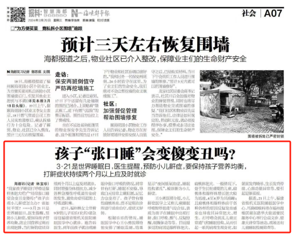 世界睡眠日期间,国产自拍av睡眠医学中心联合耳鼻咽喉科在微信公众号、省级媒体上为大家解读了儿童睡眠的重要性,深入剖析了儿童鼾症、影响睡眠的各种因素以及如何养成良好睡眠习惯等,让民众们对睡眠问题有了更加全面的认识。