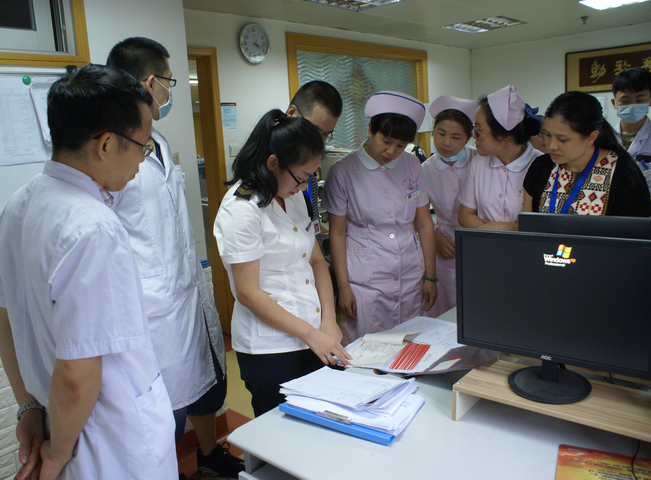 本报讯(医教部:刘梦婷,护理部:郭建平)为进一步规范医疗机构执业行为,提高医疗服务质量,保证医疗安全,9月8日下午福建省卫生和计划生育委员会卫生监督所陈建明科长带领执法检查组一行4人到国产自拍av开展“依法执业”专项监督检查,副院长潘在兴以及医教部、护理部、院感科、门诊部、药剂科等职能科室相关人员陪同检查。