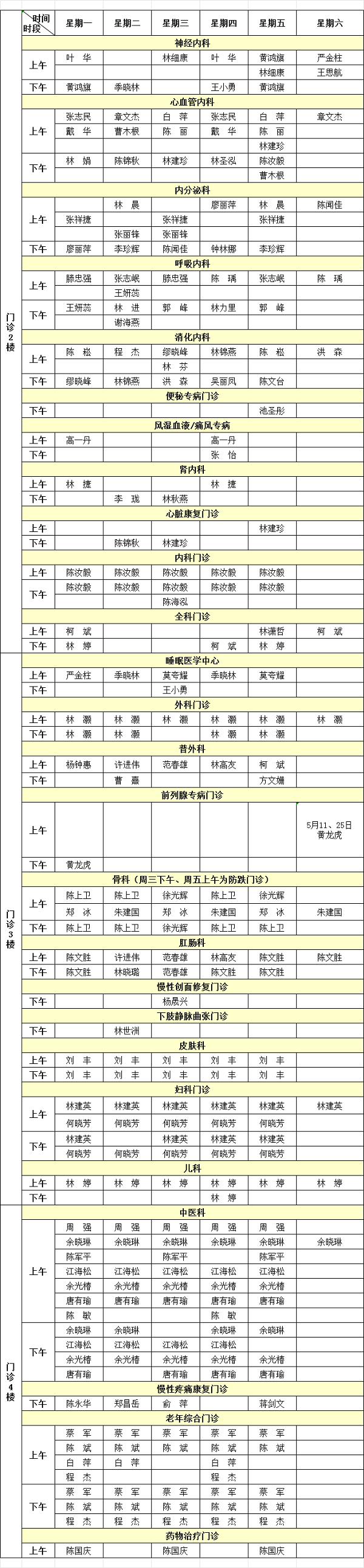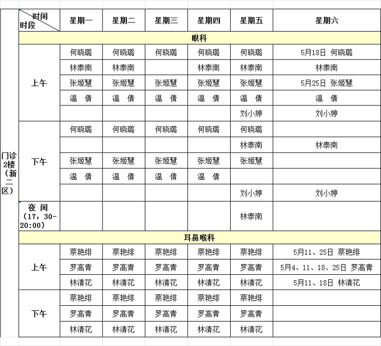 国产自拍av 2024年5月专家门诊排班表来啦!有需要的小伙伴赶紧收藏。