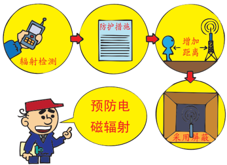 (3)根据工作场所的电磁辐射场强,确定选用相应的电磁防护用品,包括防护服、防护眼镜及辐射防护屏等。