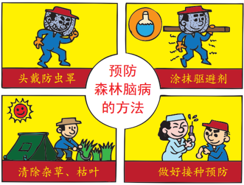 在森林地区的工作驻地周围,要搞好环境卫生,清除杂草、枯叶,减少人、畜受蜱虫侵袭的机会,加强灭鼠、灭蜱工作。准备进入疫源地的所有人员及林区工作者要做好预防接种。