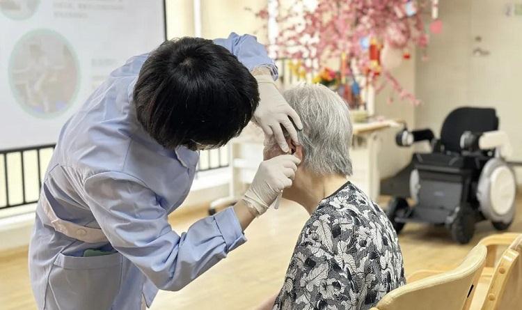 讲座结束后,团队成员们立即投入到紧张的义诊活动中。他们运用中医的望、闻、问、切诊断方法,为现场的老人们提供了个性化的健康指导和治疗建议。同时,团队成员还为养老照护中心的长者及工作人员现场免费进行虎符铜砭刮痧、耳穴埋豆等特色中医护理技术诊治,让老人们亲身感受到了中医护理的神奇魅力。参与人员纷纷表示,这次活动让他们对中医护理有了更深刻的了解,也让他们感受到了中医护理在保健养生方面的独特优势。