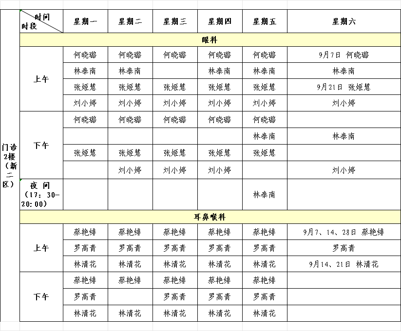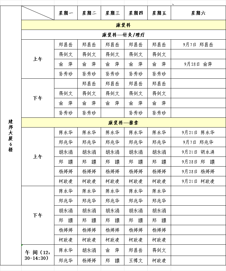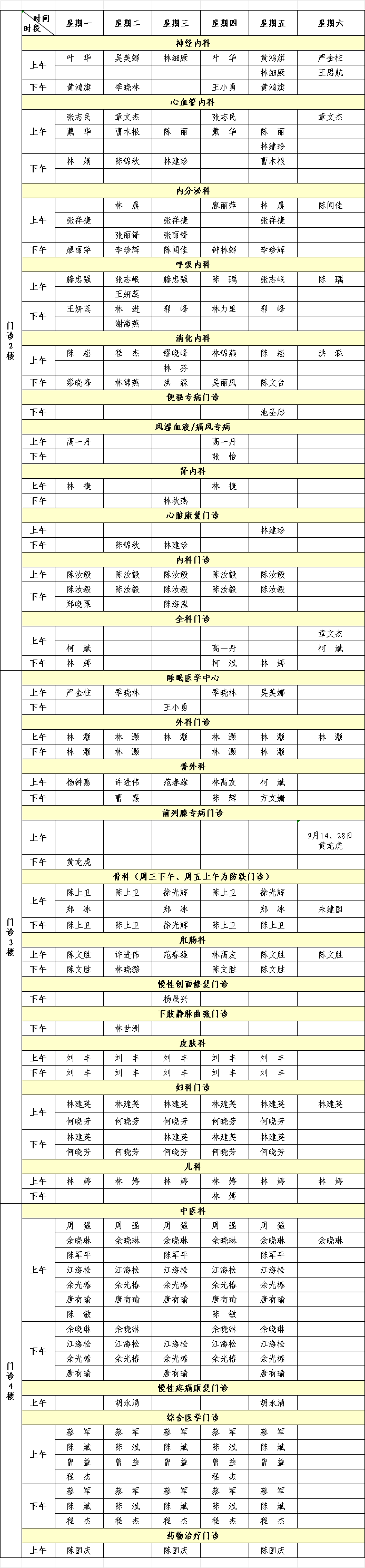 国产自拍av 2024年9月专家门诊排班表来啦,有需要的小伙伴赶紧收藏。